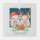 Christmas Pigs Cute Santa and Reindeer Couple Glass Tree Decoration