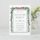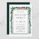 This elegant holiday party invitation features a watercolor green pine garland accented with a charming red ribbon bow.