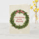 red Christmas light string and gingham bow decorating green pine wreath for Season's Greetings