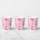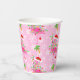 Pink Christmas flamingos wearing string lights and a Santa hat on a pink background with snowflakes and festively decorated palm trees. It's a cute pattern for celebrating Christmas with a tropical vibe! Shown here on customisable paper party cups with optional lids. You can easily resize the pattern to your preference and select your favourite background colour. Great for Christmas parties at home, school, or the office!