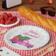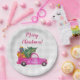 Christmas Pink Truck With Tree And Wishes Paper Plate