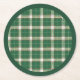 Christmas Plaid Green, White, with Red, Gold Round Paper Coaster