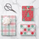 These 19" x 29" flat Christmas wrapping paper sheets come in three designs, red and green plaid, whimsical Christmas Trees and circle lines.