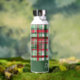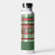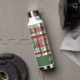 Modern christmas plaid water bottle featuring customisable name to gift all family members this holiday season. The deep greens and red colours will make their day cosy and warm.