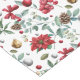 Joyous Christmas vibe pattern featuring red poinsettias, berries, pinecones, holiday bells, and winter fruit on a white background.