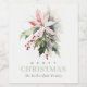 Christmas Poinsettia Berries Foliage Watercolor Wine Label