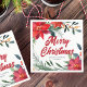 Merry Christmas in elegant red cursive script surrounded by lovely green pine needles and festive red poinsettia flowers. This gorgeous floral border is a chic touch to your corporate holiday party napkin. Customise this beautiful decor with your company or business name between the elegant winter botanical design.