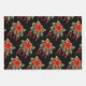 CHRISTMAS POINSETTIA, HOLLY, CANDY CANE on BLACK Wrapping Paper Sheet