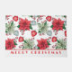 There are lovely holly berries, red and green poinsettias, and heart-shaped ornaments with snowflakes on them.
