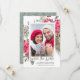 Elegant watercolor red poinsettia flowers and berries are nestled in pine and holly branches. They create a beautiful frame around your photo. Save the date is written in trendy green script. Your names and date follow below. This item is part of the Red Poinsettia Botanical Wedding Collection.