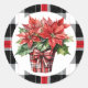 Pretty pot of red Christmas poinsettia holiday stickers with a red, black and white plaid chequered tartan background.