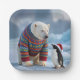Christmas Polar Bear and Penguin On a Glacier Paper Plate