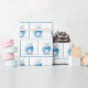 Cute polar bear wearing a blue scarf on a white background with a blue border.