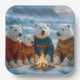 Christmas Polar Bears Around a Bonfire Paper Plate