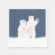 Tiny white star pattern on winter blue background with cute polar bear couple and snowflakes.