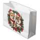 Christmas Pomeranian Dogs Mistletoe Wreath Large Gift Bag