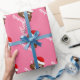 Personalised Cute happy Christmas / Santa poo emoji christmas emoji with red Santa hat on pink background with Merry Christmas text wrapping paper.
