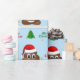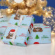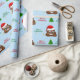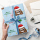 Cute happy Christmas / Santa poo emoji christmas emoji with red Santa hat on light brown background Christmas wrapping paper.