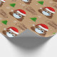 Cute happy Christmas / Santa poo emoji christmas emoji with red Santa hat and wearing covid19 mask on light brown background Christmas wrapping paper.