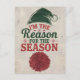 A design with the text "I'm the reason for the season". Above the text, there's a large, green, pointy hat. Below the text, there's a large, red, pom-pom.