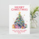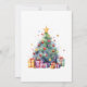 Christmas tree with presents for Christmas card in red for a festive Holiday greeting to family and friends.