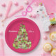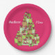Customise or personalise these paper party plates for a Christmas party, meeting or other event. This Christmas tree is composted of stacks of green and red presents to form the shape of the tree. the presents are decorated with dots, stripes and swirls. The background is red. This design is original art by Phyllis Dobbs and comes on matching paper napkins and other coordinating products for coordinated entertaining. Fully customisable.