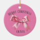 Christmas Pretty Pink Custom Name Coquette Bow Ceramic Tree Decoration