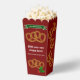 A holiday version gives a twist to this fun pretzel theme, in Christmas colours of dark red and green. The snack motif has some extra holly for festive flair. Add your own personalised text to the three custom fields to create something that fits your yuletide event, end-of-year party or other December celebration.