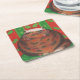 A happy tortoiseshell cat (resembling a christmas pudding!) sits on a green cushion against a red and green holly leaf patterned background. Coaster with a red, green, brown and white customisable design for you to personalise with your own text, images and ideas.