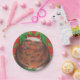 A happy tortoiseshell cat (resembling a christmas pudding!) sits on a green cushion against a red and green holly leaf patterned background. Bag with a red, green, brown and white customisable design for you to personalise with your own text, images and ideas.