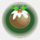 Illustration of a tasty looking festive Christmas pudding with a sprig of holly on top designed onto a sticker.