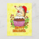 This card shows a tiny little hedgehog wearing a santa hat. He is happily sitting on a Christmas pudding cupcake, munching on the red berry that was on top.