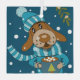 A cute Holiday glass ornament with a cartoon dog enjoying a hot cup of cocoa topped with some tiny marshmallows .