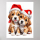Cute Puppy golden retriever dogs wearing christmas santa Claus hats