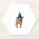 Christmas puppy in elf hat.White background. Paper Coaster