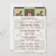 This invitation features four squares in green and tan that are adorned with red ornaments decorated with white snowflakes and green holly with red berries. White stitching adds a decorative touch, giving the repeating pattern the appearance of a quilt, creating a perfectly cosy feeling for the Christmas holiday. The lower portion of the card has some sample text that you can customise to create a personalised invite for your party or event.