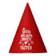Quote: Official Holiday Spirits Taster. Red background, white text. Decorated with glasses of wine, Santa's hat, coctail glass and snow crystals,