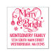 This holiday self-inking stamp features script typography of the quote "Merry & Bright" accented by ornaments and stars along with your name and address for you to personalise. Add a festive touch to your holiday mailings! Designed by Susan Coffey.