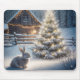 Christmas Rabbit With Glowing Tree Mouse Mat