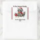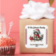 A cheerful racoon wearing a winter scarf enjoys holiday treats beside a steaming mug. This colourful sticker adds a festive touch to gift-wrapping and captures the essence of joy, laughter, and family spirit during Christmas celebrations.