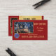 Christmas referral business card featuring your own logo on a red background with an illustration of a house and Christmas tree outline with festive snowflakes. On the back is your custom photo and a QR code template on red and gold. A great business card for a real estate agent and customisable for other professionals.
