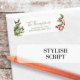 This design features a Christmas return address label, with red and green, holiday labels with a family name and address, perfect for an informal casual, handwritten script, a stylish trendy, botanical style with greenery, holly berries
