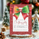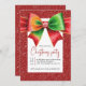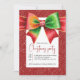 Christmas red and green bow and snowflakes party holiday invitation. Set the perfect festive tone with this charming Christmas party invitation! The classic red and green palette centers around a large, eye-catching bow, beautifully anchored by a sparkling snowflake. This joyful design is then framed by a wide, vivid red border scattered with crisp white snowflakes.