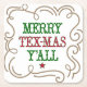 Big bold western style letters wish you a Merry Tex-Mas Y'all. Traditional Christmas colours of red and green, although available in the red and blue of the state flag as well. Typography surrounded by a looping rope frame. Add a little Texas flair to your Christmas party decorating this year. Great small gift idea or stocking stuffer for any Texan. Consider for teacher, coach, tutor, boss, grandma, mother and more. Matching products available.