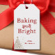 Add festive cheer to your holiday gifting with our Christmas Red Baking Spirits Gift Tags, designed to bring warmth and joy to every package. Featuring a vibrant red design with playful holiday accents, these tags perfectly capture the magic of the season. The cheerful “Baking Spirits” theme adds a fun twist, making them ideal for homemade treats, baked goods, or thoughtful presents. Printed on durable, high-quality cardstock, they provide a polished look that lasts. Their compact size makes them easy to attach to bags, boxes, or jars, while leaving space to write a personal message. The bold red tones create a classic holiday feel that pairs beautifully with any wrapping style. Lightweight and versatile, they add both charm and convenience to your gift-giving. Perfect for friends, family, or party favours, these tags transform simple gifts into memorable holiday surprises.