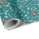 Modern winter holidays / Christmas seasonal gifts wrapping paper with a red orange berries and foliage branches pattern over a plain blue teal (editable) background.+++++++ If you want to change the background colour, select CUSTOMIZE option.