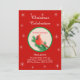 Christmas red cardinal bird and snowflakes on red party invitation. Text is ready to be personalised.