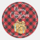Create your own Merry Christmas return address labels featuring Christmas gifts and a calligraphy type font on a red buffalo plaid background. Easily personalise these red chequered Merry Christmas labels with your family name and address.