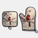 Beautiful Christmas Red Cardinal Oven Mitt & Pot Holder Set