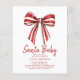 Presenting a beautifully designed Christmas baby shower invitation that beautifully encapsulates the enchanting spirit of the holiday season! This exquisite creation features a delightful red and white coquette bow, elegantly set against a pristine white backdrop. The playful phrase "Santa Baby" adds a whimsical touch, striking the perfect balance between festive charm and joyful anticipation. Flip it over to reveal a cheerful candy cane stripe pattern in vibrant red and white, offering an extra layer of delightful flair. Personalise this charming invitation to make it uniquely yours.